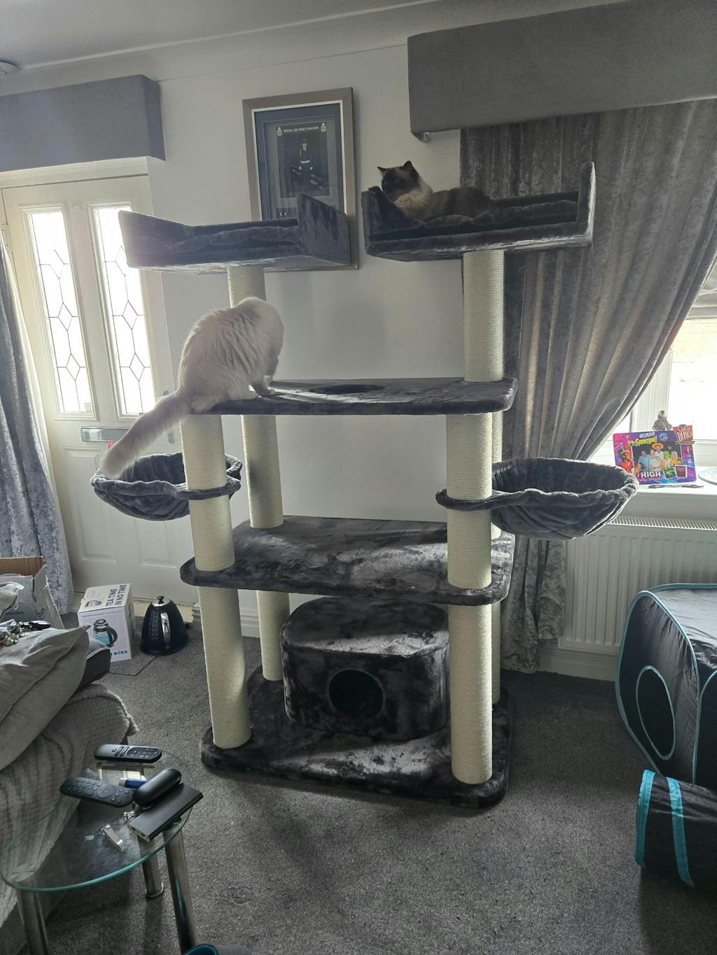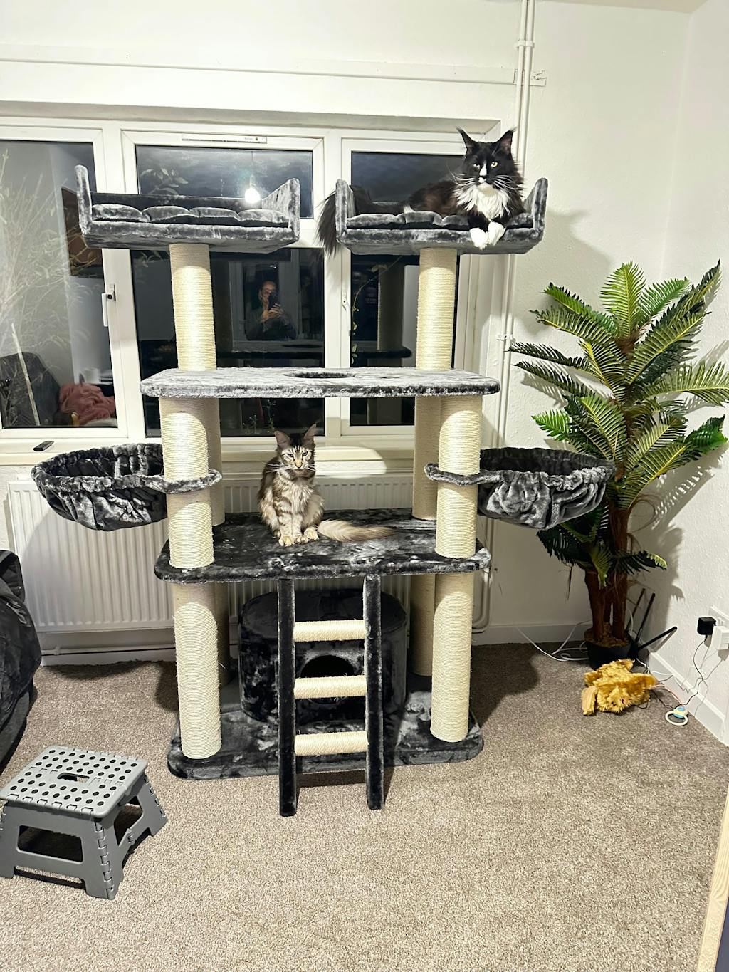 Og ja, vi har lyttet til dig (og andre kunder). ‘Mine katte kæmper nogle gange om, hvem der må ligge højest, der er sådan en dejlig pude i’. På grund af de to store liggepladser har hver kat sit eget sted. Ingen flere skænderier om, hvem der må ligge højest!