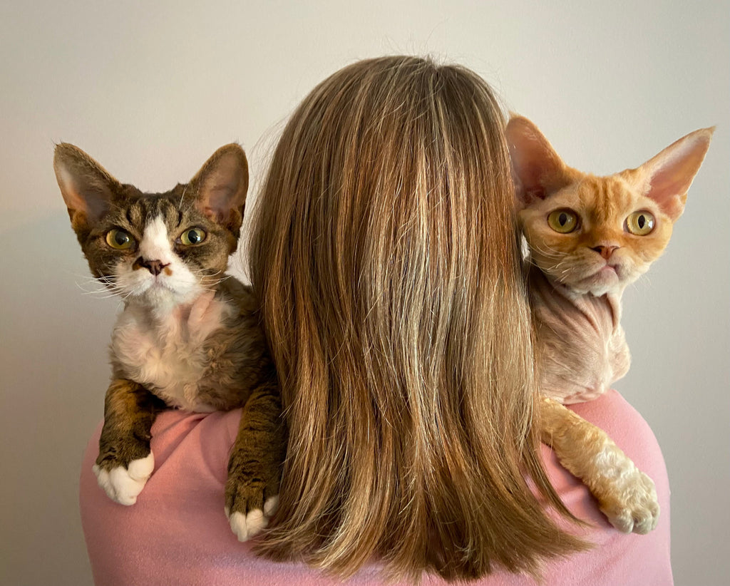 Kahdesta kissasta kaksi ovat Devon Rexejä, jotka tunnetaan hoikista vartaloistaan, aaltoilevasta turkistaan ja suurista korvistaan. "Monet ihmiset tuntuvat pitävän niitä omituisina, koska ne näyttävät hyvin erilaisilta kuin muut rodut", mutta vaikka ne näyttävätkin hieman erilaisilta, Hannah rakastaa niitä. "Rakastan kissojani enkä voisi kuvitella eläväni ilman yhtäkään. Jos aloittaisin alusta, valitsisin taas Devon Rexin."