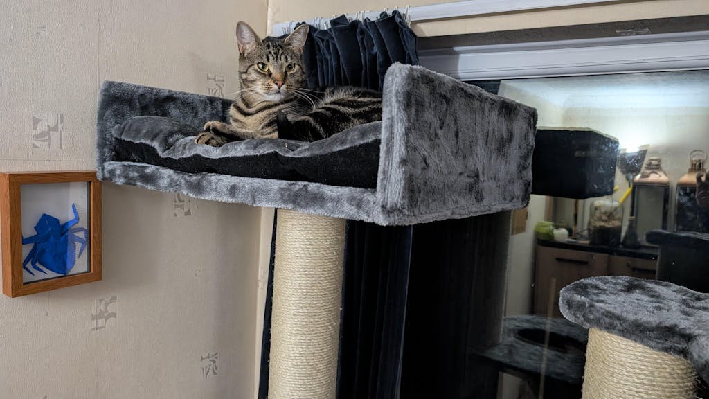 - Das Model neben dem Kratzbaum ist 1,65 m groß
