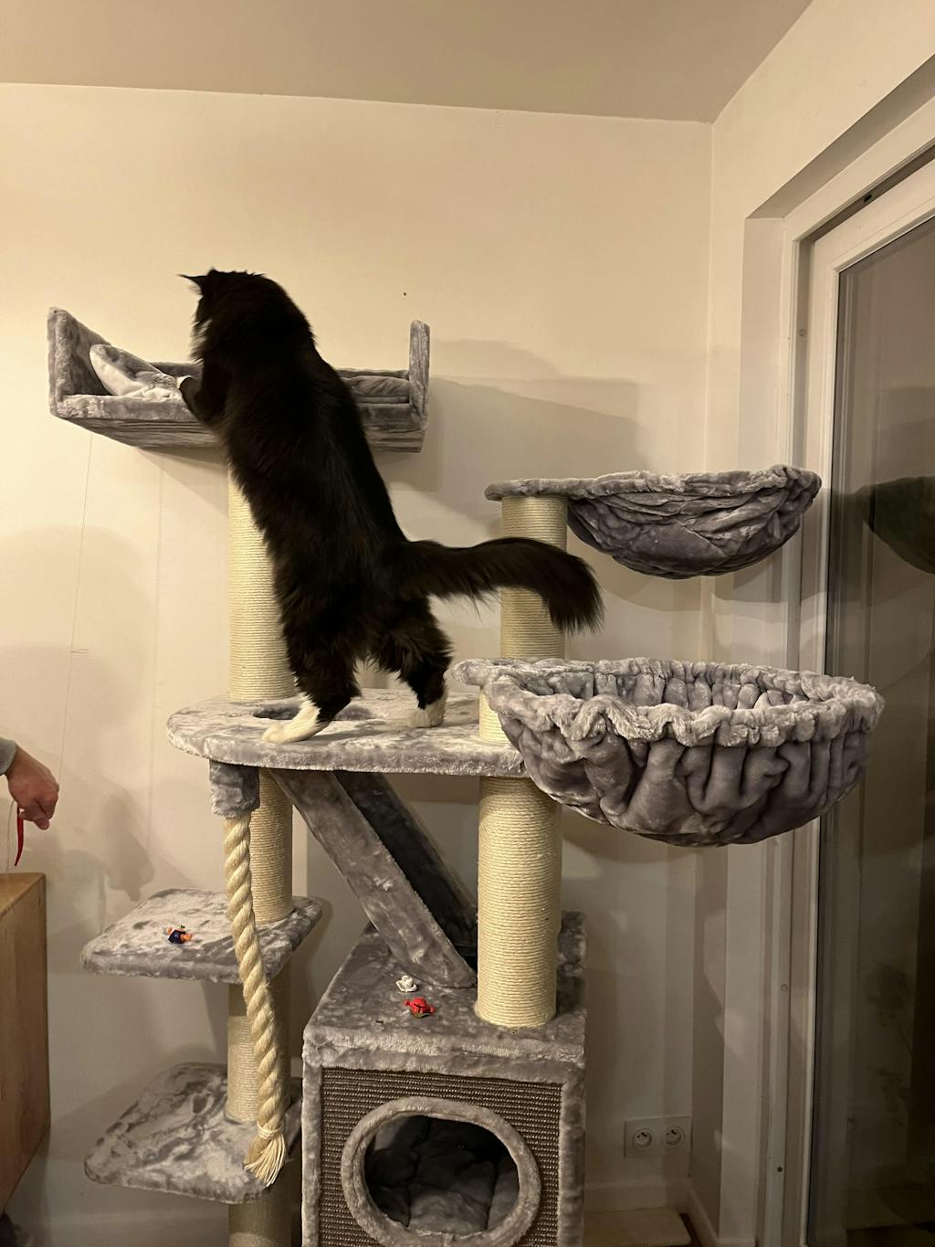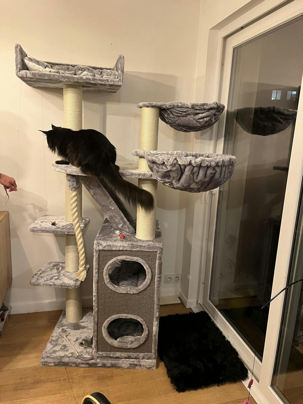 De Krabpaal Cat Penthouse Plus Lichtgrijs is met zijn 12 cm dikke sisalpalen en mega grote krabton van natuurlijk sisal een waar paradijs voor katten. Door de grote lounge ligplaats, twee hangmatten met een diameter van 45 cm en 80 cm grote krabton hebben uw grote katten genoeg om te ontdekken!