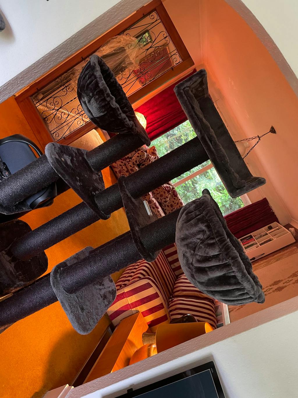 Onze hoogwaardige reserve onderdelen waaronder Hangmatten, kattenligplaatsen en sisalpalen staan bekend om hun uitstekende stabiliteit, duurzaamheid en kwaliteit. Het natuurlijk sisaltouw aan de palen is van boven tot onder verlijmd zodat het niet lost of breekt, en alle panelen worden bekleed met hoogkwalitatieve plushstof (600g/m2). Om de stabiliteit van de krabpaal te garanderen, worden alle bevestigingsonderdelen met een ultrastevig kunststof ABS binnenwerk geproduceerd en gebruiken wij overal een minimale schroefmaat van M8 of M10 tussen de sisalpalen.