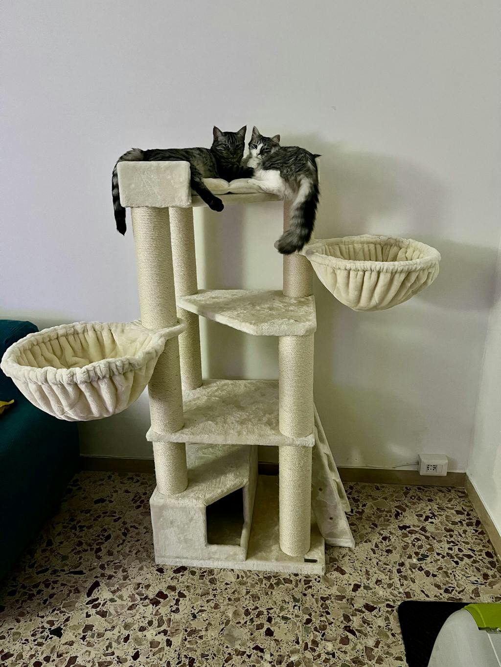 We have 3 cats 5,3 and 8 months old and they all love each cat tree. They climb up the trees use it as scratching posts and great spot to sleep on especially the ones by the windows. We would never go back to cheep and wonky cat trees from pet stores or online.