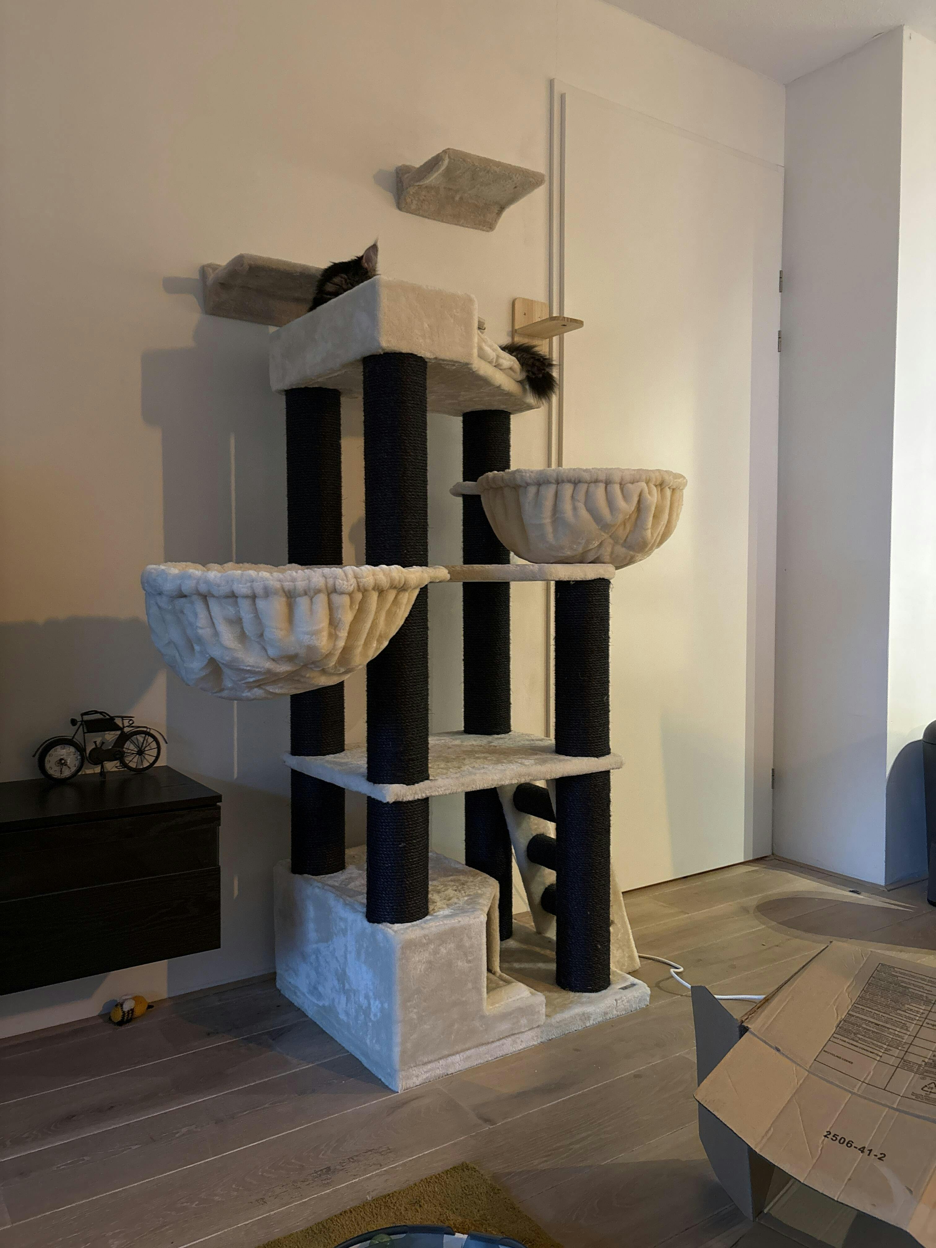 De katten in het nieuwe huis verwend met een nieuwe krabpaal. Ik wilde een mooie grote welke ook stevig is. Krabpaal komt in drie pakketen, goed verpakt en duidelijk in elkaar te zetten. De katten zijn er heel erg blij mee en maken er goed gebruik van!